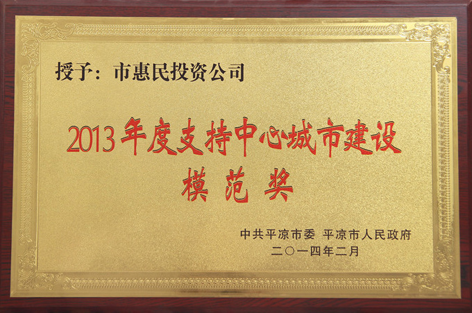 2013年度支持中心城市建設(shè)模范獎(jiǎng)